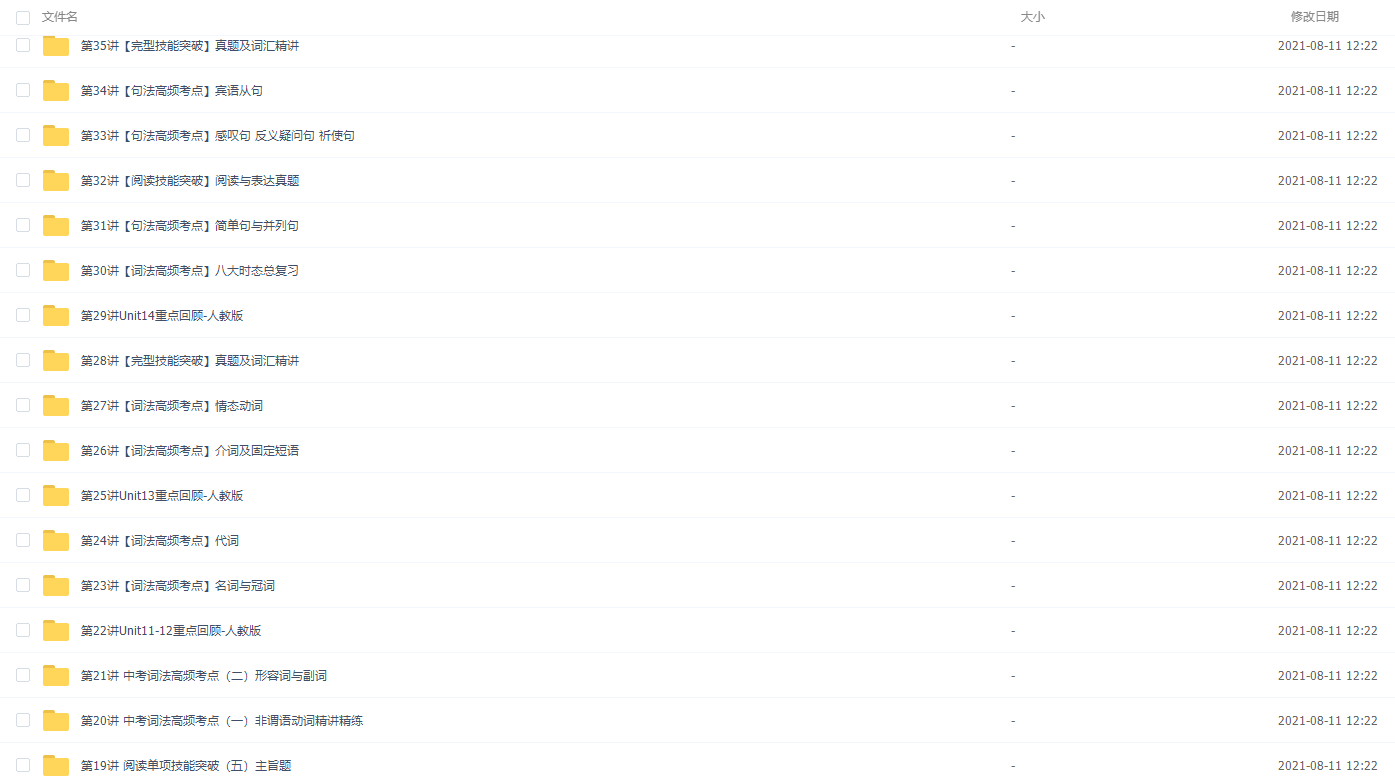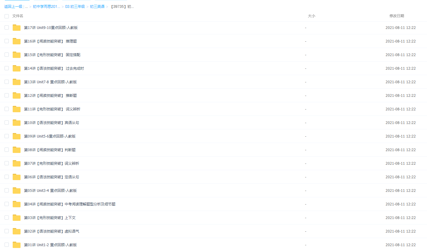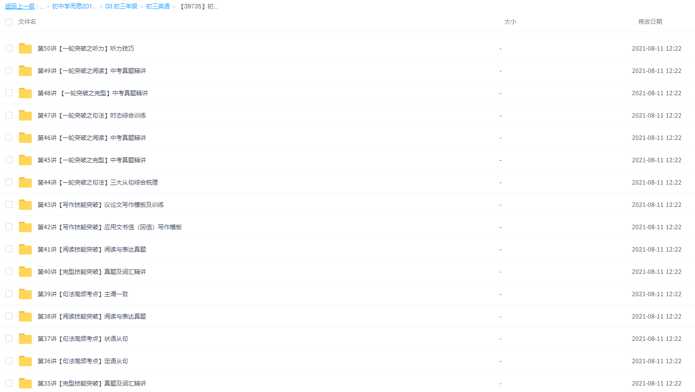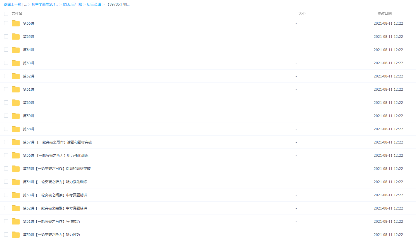 曲艺 2021秋初三英语秋季系统班 15讲完结带讲义目录:├─初三听力汇总(30...