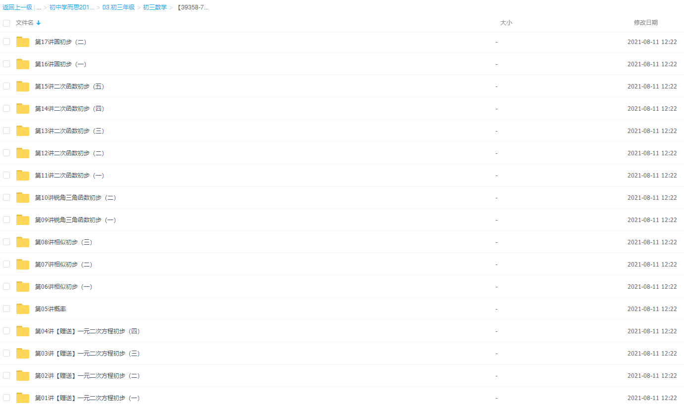 [6589]初三上学期数学满分冲刺班[20讲][朱韬][百度云网盘] 课程目录:...