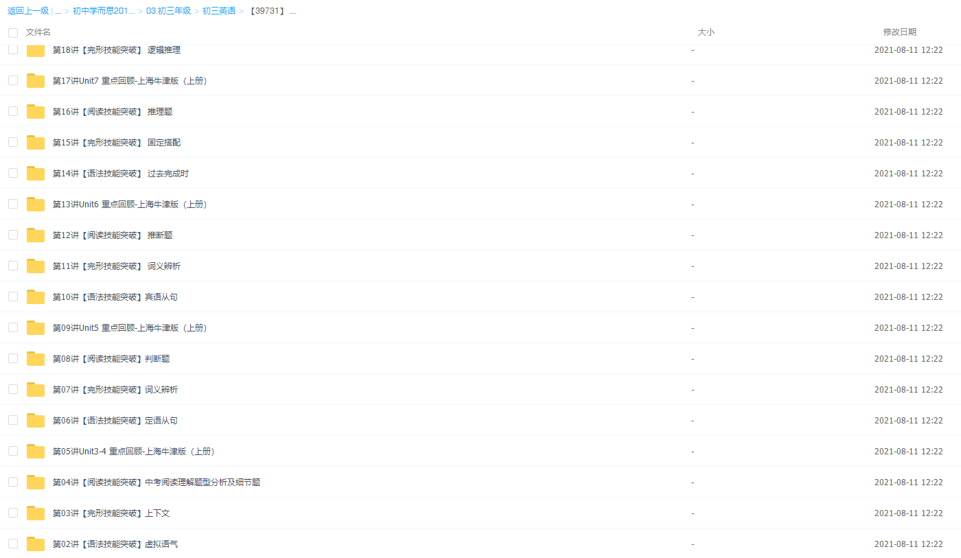 【5888】初二上学期人教版英语课内突破班【8讲刘飞飞】[百度云网盘] 突破初中...