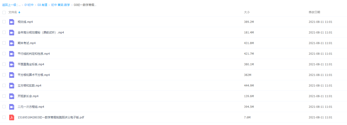此课件来自有道精品课,有道精品课初一曹笑数学寒假抢跑集训营,包含视频课程和讲义资料。此课件主要知识点包括:初一数学寒假抢跑班讲义电子版.pdf、二元一次方程组、全年高分规划揭秘等等视频
