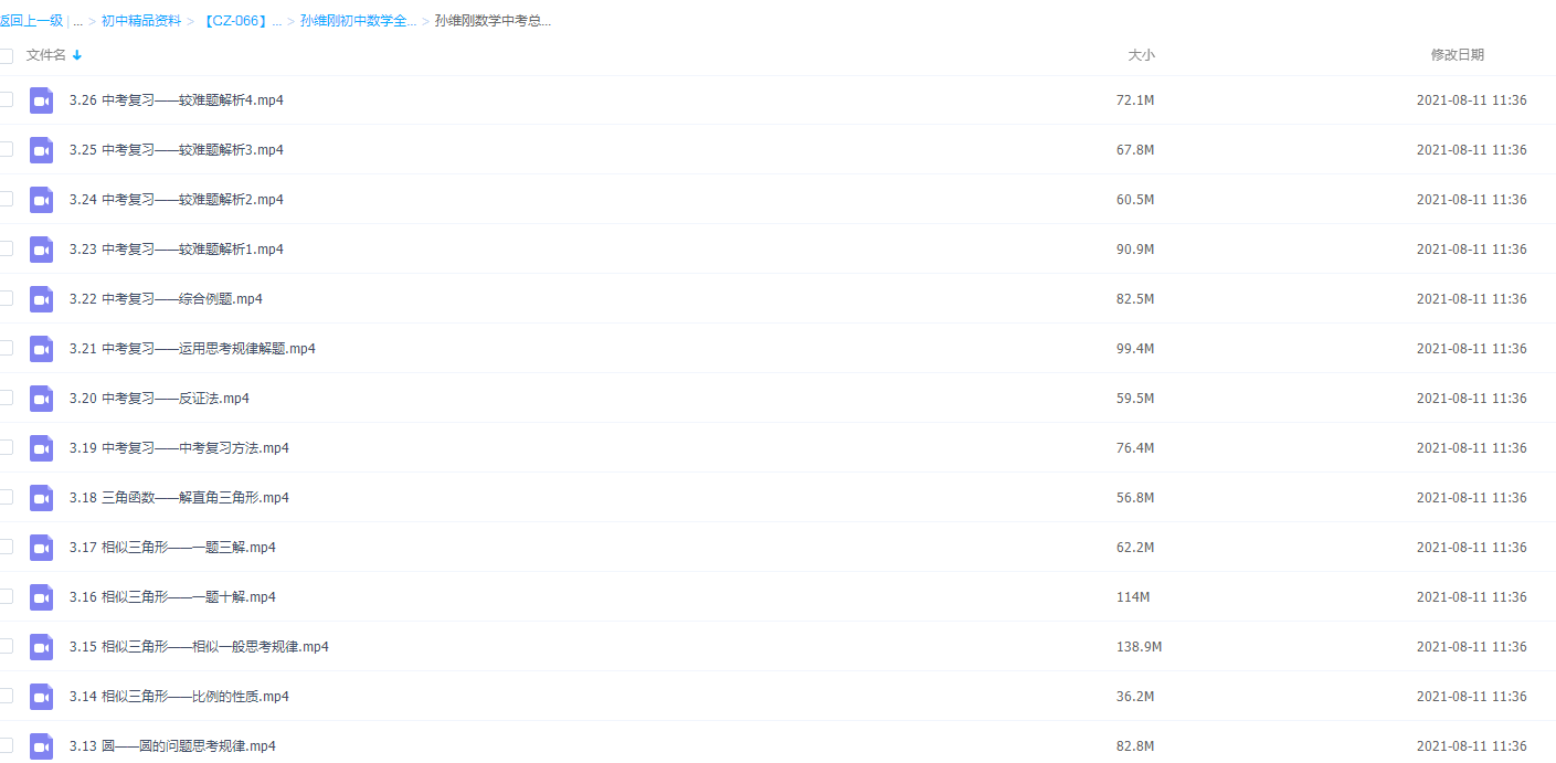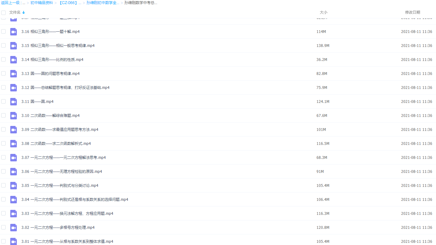 此课件来自腾讯课堂,孙维刚数学中考总复习初中视频课程,共26课时。此课件主要知识点包括:一元二次方程一从根与系数关系到整体求值、一元二次方程一多 根号方程处理、一元二次方程一换元法解方程、 方程应用题、一元二次方程一判别式还是根与系数关系的选择问题、一元二次方程一判别式与分类讨论、一-元二次方程一无理方程检验的原因等视频。