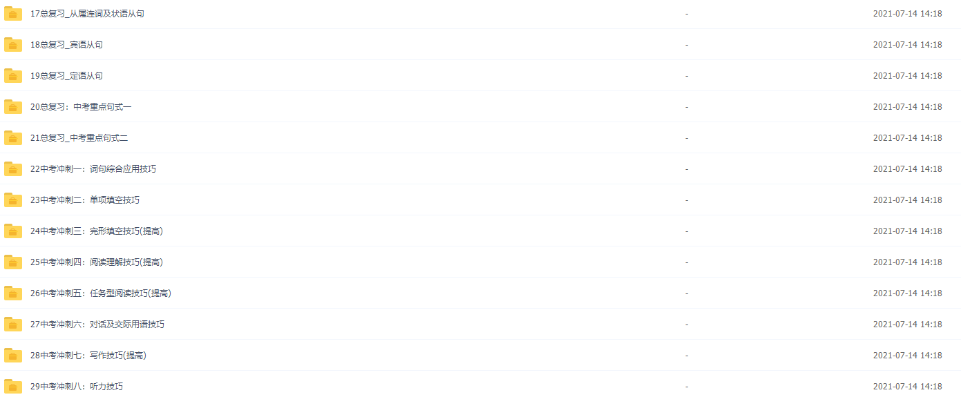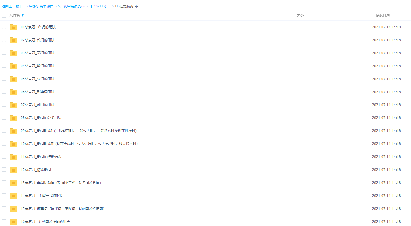 此课件来自初中仁爱版英语中考英语总复习,仁爱版英语起点低、循序渐进,方便初学者培养英语学习兴趣,从而很快进入英语学习状态。仁爱版英语有丰富的英语知识,内容丰富,讲解详细,轻松提高孩子英语成绩。此课件主要知识点包括:名词、代词、冠词、数词、介词、形容词、副词、动词、动词时态、情态动词、非谓语动词、主谓一致与倒装、并列句与连词用法、中考冲刺等。