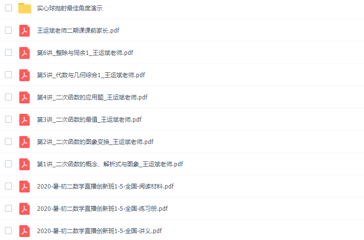 孟亚飞 2020寒假初三数学班目录:├─2020初三数学寒假讲义.pdf├─20...
