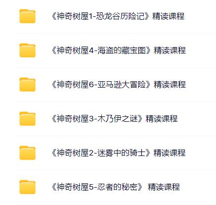 神奇树屋6本精读课程,每本有10个部分,每个部分由视频课程+单词+习题+答案组成,完整分享~~~