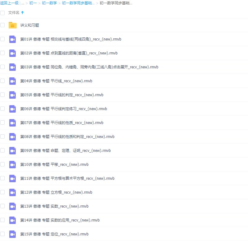 此课件来自数学学习网傲德初中初一数学下学期课程(同步基础整式与方程组专题),此课件主要知识点包括:相交线与垂线、点到直线的距离、同位角、内错角、同旁内角、平行线的判定、 平行线的性质和判定、命题、定理、证明、平移、平方根与算术平方根、立方根、实数的应用、平面直角坐标系、点的坐标、坐标系中的距离问题、坐标系中的平移与对称、直角坐标系中的面积、二元一次方程、代入消元法解二元一次方程组、二元一次方程组的应用、不等式及其解集、方程与不等式综合、统计调查、统计图、直方图、期中期末串讲。