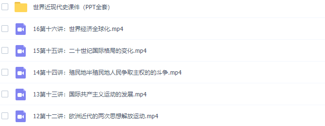 此课件来自学科网世界近现代史专题课程高清视频,此课件主要知识点包括:早期资产阶级革命、血腥的资本积累、19世纪60年代的资本主义世界、比较新经济政策和罗斯福新政、两次世界大战、二战后社会主义国家的改革与演变、二战后西欧、日本的经济发展、美国崛起的历程、明治维新和戊戌变法、三次工业革命、欧洲近代的两次思想解放运动、国际共产主义运动的发展、殖民地半殖民地人民争取主权的的斗争、二十世纪国际格局的变化、世界经济全球化。。。