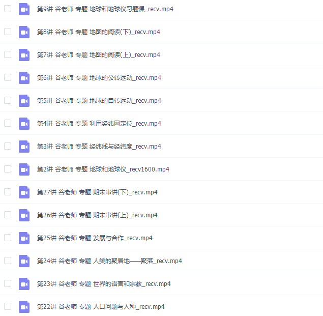 此课件来自简单学习网,初一地理谷老师同步提高上学期课程。此课件主要知识点包括:地球和地球仪、经纬线与经纬度、利用经纬网定位、地球的自转运动、地球的公转运动、地图的阅读、等高线地形图、分层设色地形图和地形剖面图、地图和地形图的应用、大洲和大洋、海陆的变迁等等视频课程。。。。