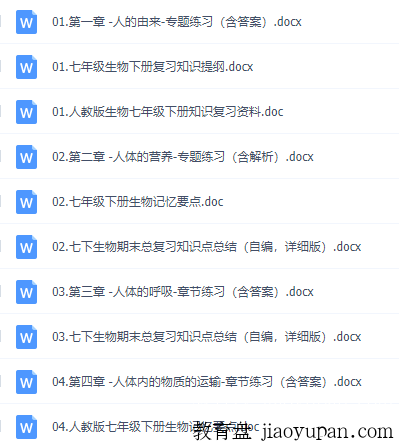 初一生物课程,课后习题试卷练习及答案,有需要可下载! 声明:本站资源来自会员发布以及互联网公开收集,不代表本站立场,仅限学习交流使用,请遵循相关法律法规,请在下载后24小时内删除。 如有侵权争议、不妥之处请联系本站删除处理! 请用户仔细辨认内容的真实性,避免上当受骗!