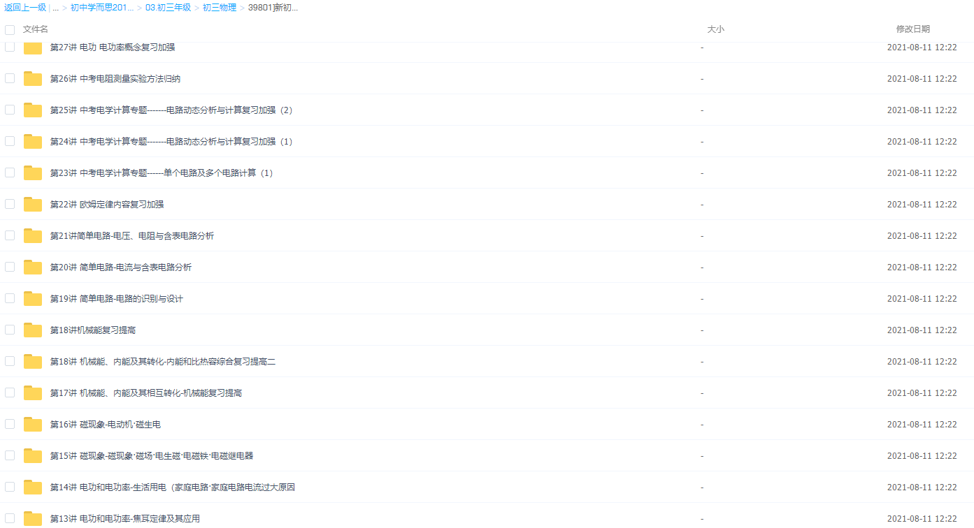 此课件来自学而思网校,【39801】新初三物理年卡尖子班(全国北师版)共62讲,包含视频课程和讲义资料 。此课件的主要知识点包括:电功和电功率-额定功率复习加强、压力压强计算、浮力计算及物体浮沉条件、中考必考的电学实验题归纳、中考实验-光学及热学实验题等视频