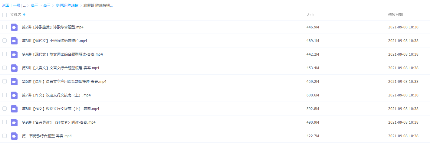 高三语文陈瑞椿视频课,里面主要讲解文言文,现代文希望有所帮助!