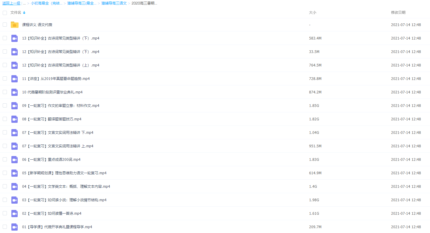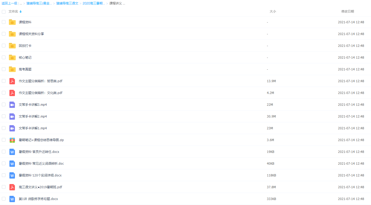 此课件来自猿辅导网校,代薇语文暑假班一轮复习高清视频,包含视频课程和讲义资料 。主讲代薇老师课堂风趣中不乏严谨,课堂内容充实丰富,所讲授答题思维及做题方法实用性强。此课件主要知识点包括:文言文实词用法精讲、理性思维助力语文、理解小说情节结构、古诗词常见类型精讲等视频。