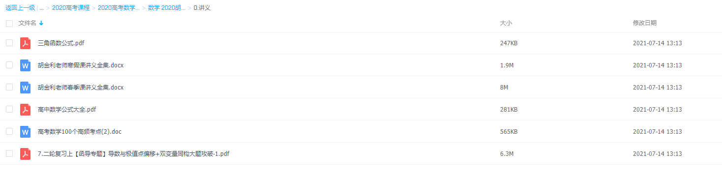 数学2020胡金利讲义整理知识点考点公式大全资料下载学习