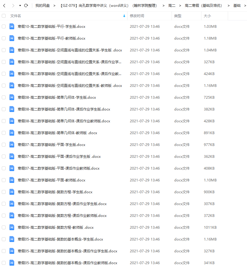 考试的时候心态也很重要,要有一个平常心,要平稳冷静,按部就班的去学习!尚孔数学高中高二寒假数学基础版讲义来了!