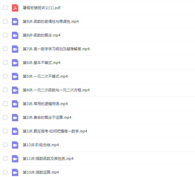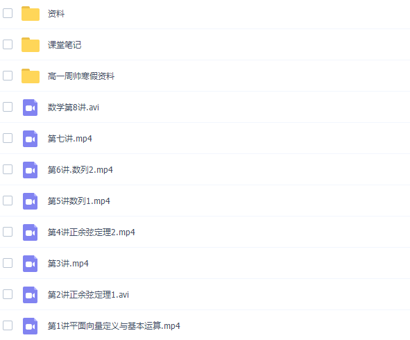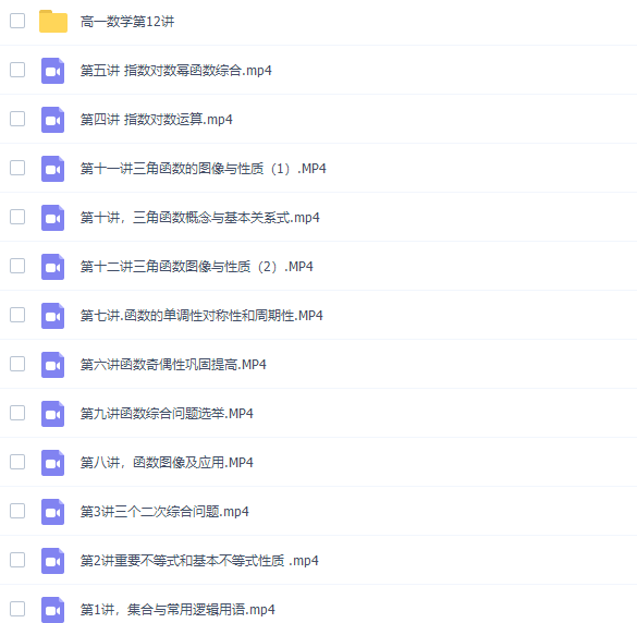 此课件来自高途课堂,2020高一数学周帅高清视频(春暑秋寒全年班)。此课件主要知识点包括高一数学的所有知识点,课程包含部分电子资料,可作为课先预习或课后复习视频资料,欢迎有需要的同学们网盘下载学习!