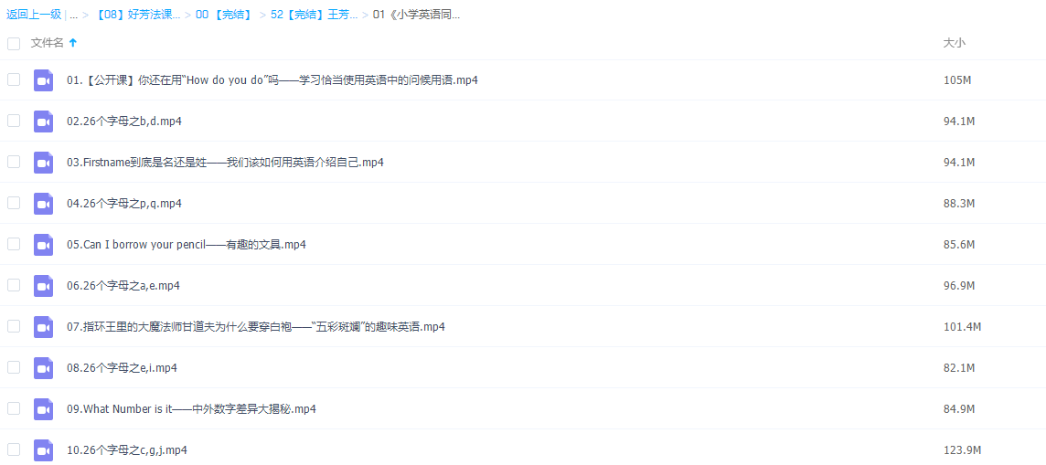 【完结】乐读0基础学26个英语字母目录:├┈01.A-E.mp4├┈02.F-J...