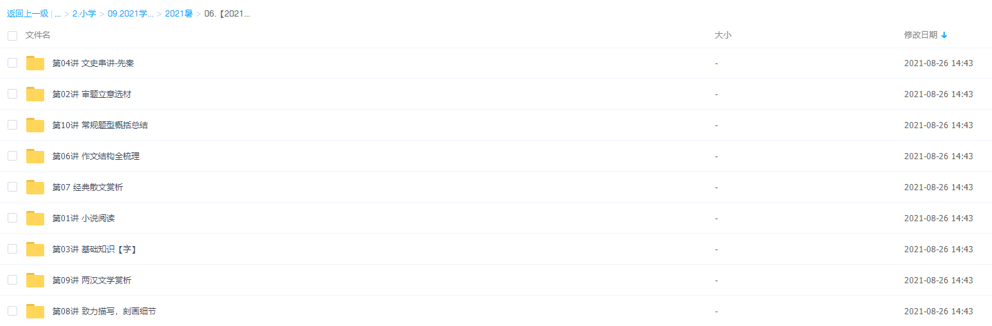 语文在以后的考试中越来越重要了,作为六年级的学生来说,语文的学习尤其重要,因为不久的将来小朋友们就要升入初中了。此课件来自学而思培优网校,学而思消息六年级语文暑假培训班,包含视频课程和讲义资料 。此课件主要包括:小说题型大观、基础知识【字】、作文结构全梳理、常规题型概括总结、两汉文学赏析等等视频。
