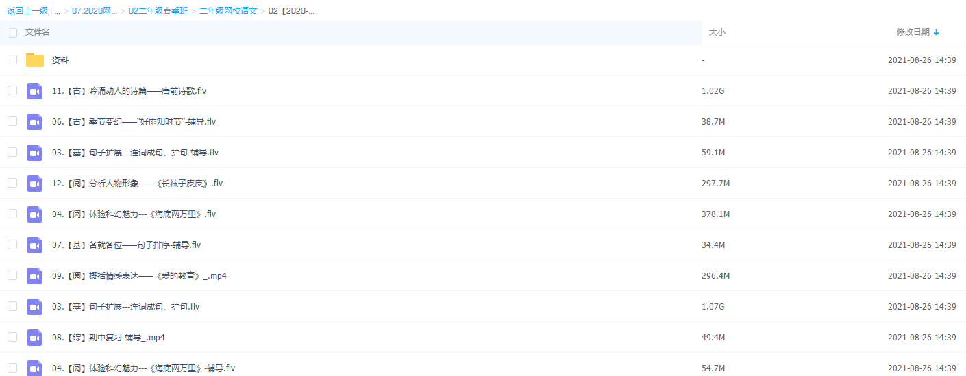 高思网课 思泉语文四年级(上下册44课带讲义)全集目录:├─四年级上│ ├─四年...