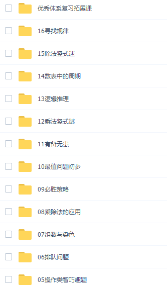 此课件来自学而思网校,王睿四年级数学培优2021年秋季班视频课程。此课件主要知识点包括:多位数的计算、图形中的点线角、操场中的数学、面积综合、操作类智巧趣题、排队问题、组数与染色、乘除法的应用、必胜策略、最值问题初步、有备无患、乘法竖式谜、逻辑推理 、数表中的周期、除法竖式迷、寻找规律。