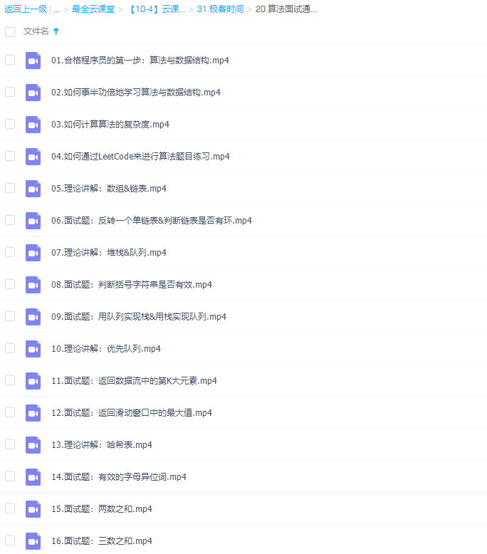 极客时间联合覃超老师推出《算法面试通关 40 讲》视频课程,以帮助求职者在短时间内掌握面试中最常见的算法与数据结构相关知识点,学会面试中高频算法题目的分析思路,同时给大家从面试官的角度来分析算法题的解答技巧,从而更有效地提升求职者的面试通过率。