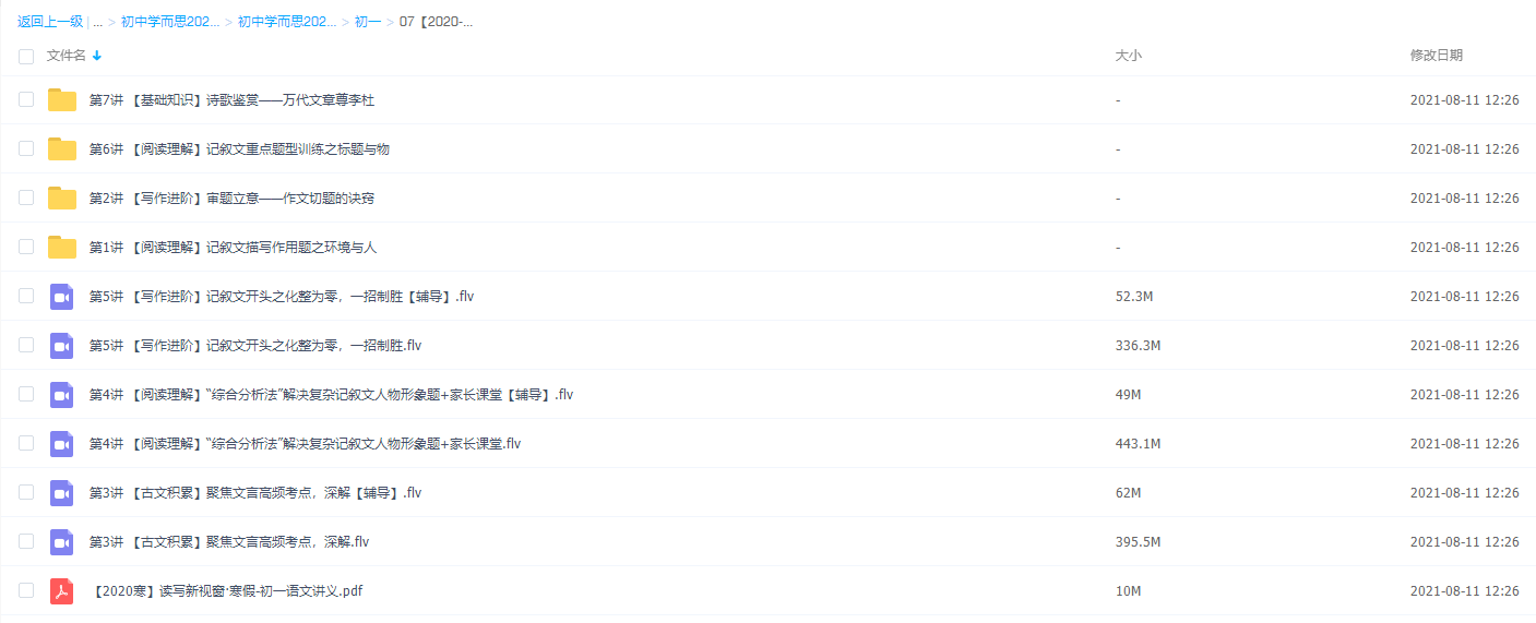 此课件来自学而思网校,初一语文阅读写作直播班(石雪峰)。主讲石雪峰老师讲的非常的细致,会用通俗易懂的语言去讲解。此课件主要知识点包括:【基础知识】诗歌鉴赏——万代文章尊李杜、【写作进阶】审题立意——作文切题的诀窍、【写作进阶】记叙文开头之化整为零,—招制胜、【阅读理解】"综合分析法"解决复杂记叙文人物形象题等视频。