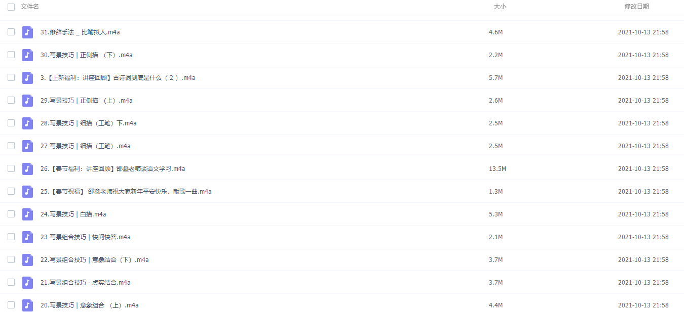 此课件来自邵鑫中小学古诗词鉴赏技巧完结,此课件主要包括:鉴赏8大高频考点、42个鉴赏技巧。并大量运用古今诗词、歌词的对比举例,帮助你更好地理解、掌握、运用这些技巧。通过课程学习,对古诗词、文言文理解更加深刻、准确。学习诗词鉴赏技巧,不仅对诗词学习有帮助,对阅读、写作的帮助也很大。